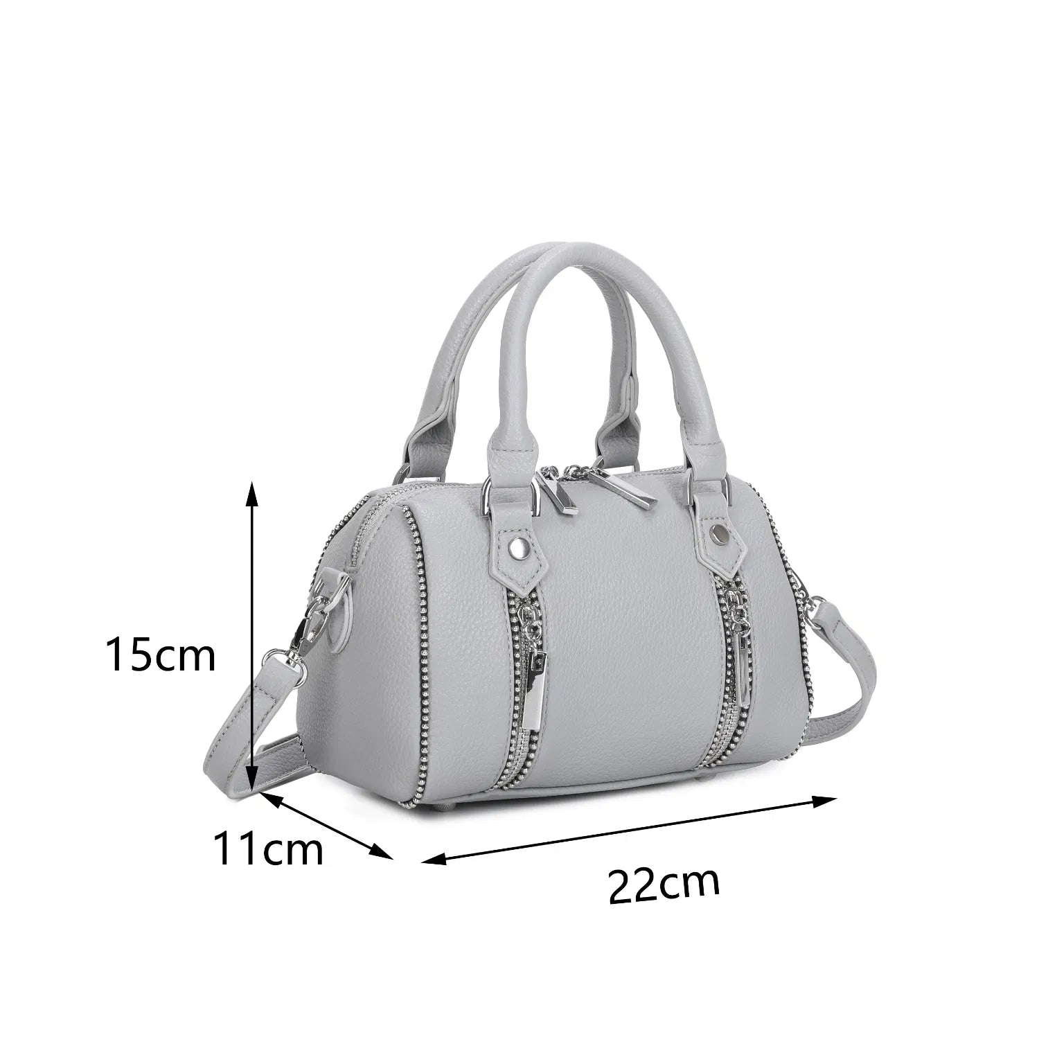 - Silver tone hardware